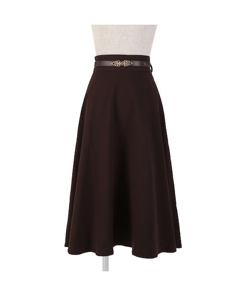 アンティークの様なゴールドのベルトバックルが目を引くスカート。 ベルトを取り外して、スカートだけでもシンプルに着こなすことができます。 たっぷりのフレアーと長めの着丈がよりレディライクに見せてくれるのが◎ シンプルなデザインかつ、長いシーズン着られるアイテムで、ワードローブに加えたい一着です。 MATERIAL: モデル身長: 166cm 表地ポリエステル60%レーヨン35%ポリウレタン5% 裏地 ポリエステル100% made in China サイズウエスト脇丈 Free73.5〜63.5cm76.5cm