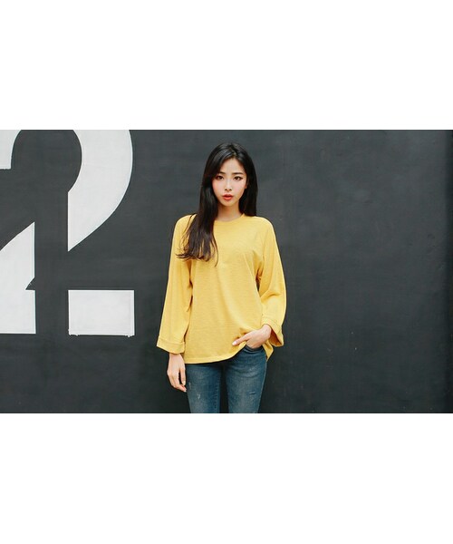 ラグランスリーブが特徴的なワイドスリーブ無地Tシャツです。 ベーシックながら、ユニークなお洒落ポイントをキープしているトップス。 ゆったりめのラグランスリーブで着心地よく体型カバーも◎ シンプルな無地なので、ボトムスを選ばないのが嬉しいところです。 ボトムはスキニーやスカートどちらも相性◎