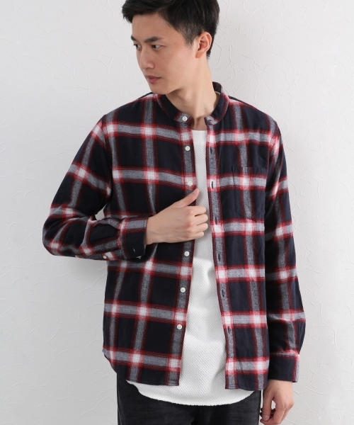 ★肌触り抜群のソフトタッチフランネル★ 高品質な綿を100%使用し、起毛や洗い加工にこだわりなめらかに仕上げました。 袖を通したときに気持ちよさが実感できる抜群の肌触りです。 トレンド感のあるバンドカラーで襟元に変化をつけられます。 一枚着、羽織、インナーと幅広く使えて柄がコーディネートのアクセントになるので、色違いで揃えても長い期間で活躍してくれるお勧めの一枚です。