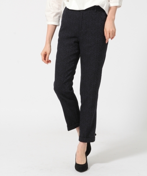 定番シルエットパンツに新作が登場 人気のトラウザーパンツ、生地にジャガード柄を施した新作が登場。 ストレッチ性も高く裾に向かって細くなるシルエットはきれい目に穿けるおすすめの1本! スタイリングにも馴染みやすいモノトーンベースのカラーはワードローブにも使いやすく、生地に柄があることでスタイリングのアクセントになるのもポイントに。 ストレッチ性も良く穿き心地にこだわった1点、ぜひお試しください♪