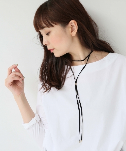 今季注目のチョーカーをベロア素材で仕立てた 今年らしいアイテム。 細くて華奢なリボンが大人っぽく こなせます。 Y字部分の金具は調整可能ですので お洋服に合わせてバランスを調整できます。 短くしてリボン結びにすると、キュートな印象に。