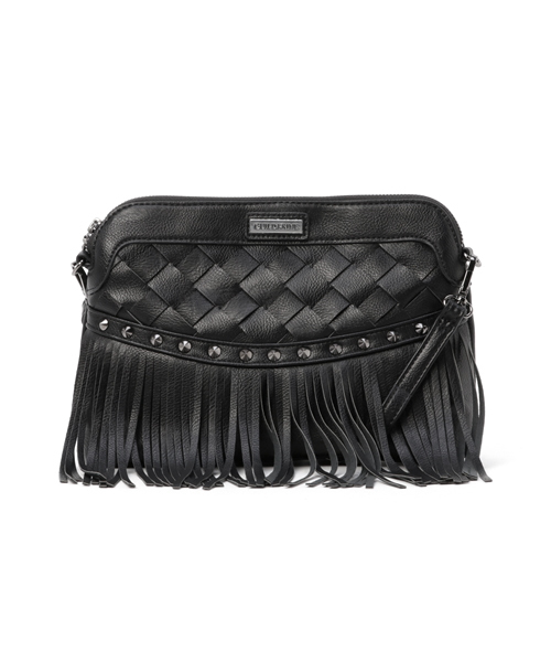 たっぷり施されたフリンジと、編み込みデザインがポイントのショルダーバック。 さらにアクセントに付けたスタッズが目を引くポイント。 シックなブラックカラーと程よいサイズ感が、大人の女性にぴったりなアイテムです。 ショルダーストラップと、ハンドバック用のチェーンがセットになっているので、コーディネートに合わせて2WAYでご使用いただけます。 お手入れの簡単なフェイクレザーを使用しておりますので、雨の日なども気にせずお使いいただけます。 普段のコーディネートに取り入れる事で旬な着こなしを楽しめます。