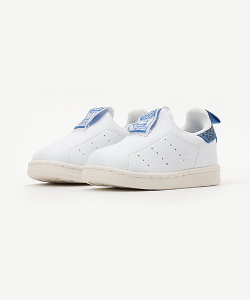adidasの“360 concept collection”の一環である「STAN SMITH 360 I」は、初代モデルの“SS”の要素を取り入れ、ストレッチの効いたアッパーに、柔軟性に優れたアウトソールを合わせて、理想的なインファントシューズに仕上げている。スネークスキン柄のヒールタブがポイント。