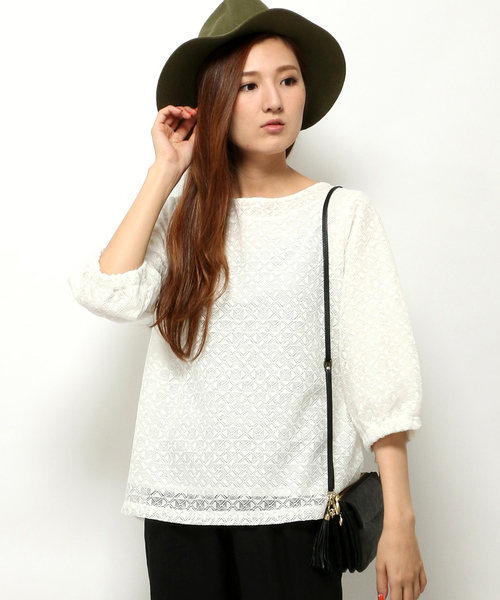 一枚は持っておきたい総レースプルオーバー。 スクエア形のレース模様なので、甘くなり過ぎず落ち着いた雰囲気で着て頂けます。 裾は少し後ろを長くした今年らしいヘムライン。 ベーシックなカラーに、トレンド色でもあるバーガンディーを揃えたラインナップです。
