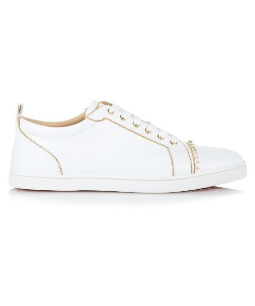 Christian Louboutin's white leather Sporty Henri trainers offer a slick way to wear the label's signature embellishment. They're a streamlined low-top style with a lace-up front and are detailed with a trim of small gold-tone metal spikes along the front along with same-tone eyelets and chains that run along the seams. Fits true to size.
