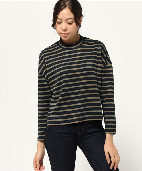 ソフトな肌触りが心地よい綿スムース素材を使用したカットプルオーバー。 キュッと詰まったハイネックもクラシックなトレンド感を与え、上品な表情を添えるポイント!ほどよいフィット感に、バランスの取りやすいコンパクトな着丈で、合せるアイテムを問わないのも嬉しい◎ 着こなしのアクセント使いにもぴったりなボーダー柄のアイテムは、今季のトレンドでもあるキャミ合わせのモダンガーリーなレイヤードスタイルもおすすめです。