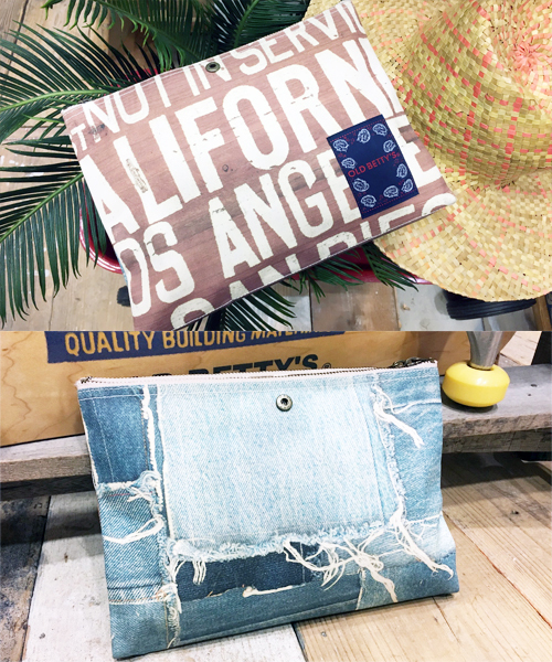 コットンキャンバスに転写プリントを施したダブルフェイスクラッチポーチです。 【WOOD】表地は木の板にゴロがプリントされた木目がリアルな転写プリントと、 裏地は、様々なデニムをパッチワークした転写プリントです。 ロゴのなかにCADILLACが隠れているオリジナル柄です。 【マーブル】表地はデニムパンツ転写プリントと、裏地は、カラフルなマーブルチョコの転写プリントです。 チョコの中にCADILLACが隠れているオリジナル柄です。 釦の着脱で両面楽しんで頂けます。 真ん中の折り曲げ部分を縫い留めているので左右に別々のものを収納していただけます。