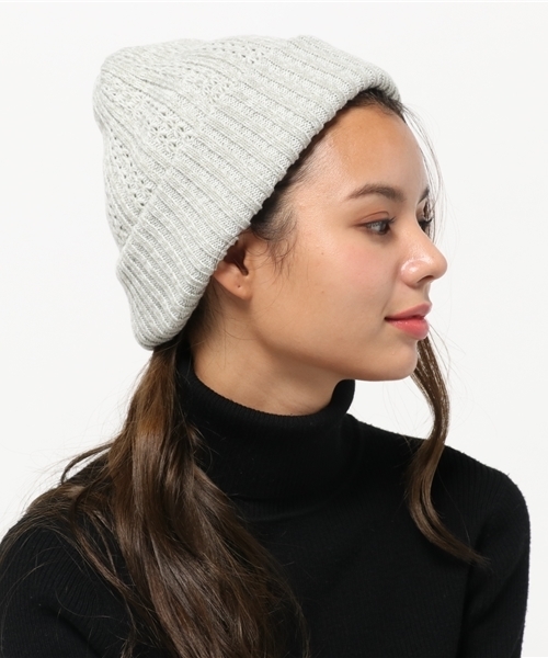 秋冬のマストグッズのニット帽はプチプラなのでプラスワンアイテムとして持っていたい。編み込みパターンを変化させているのでさりげないおしゃれを楽しめます。【mer11月号掲載商品】