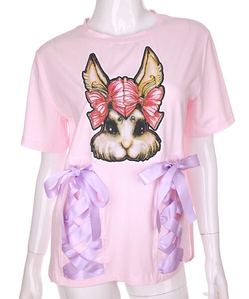 ♡Bobon21 2016 Summer New Collection♡ CuteなウサギがプリントされたTシャツが新登場 サラッとした着心地バツグンのテンセル素材を使用 ガーリーさをぐ~んと引き出して切れるレースアップデザイン 黒+ピンク、白+赤、ピンク+パープルの配色になっているよ
