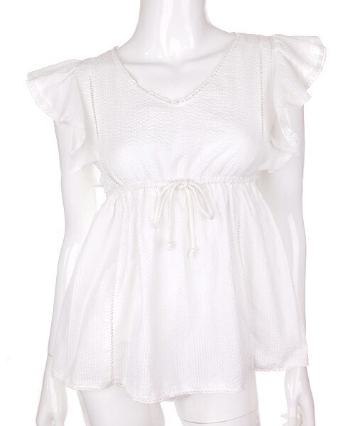 ♡Bobon21 2016 Summer New Collection♡ 夏には嬉しい涼しい、表面ポコポコのリップル生地 襟元はVネック、ガーリーなデザインだけど大人ぽく見えるよ 袖から両サイドにかけてフリルをプラスし、フェミニンなボリューム感をプラス♪ 胸下には絞りが入っているので、スタイルアップ効果も期待できるね♡