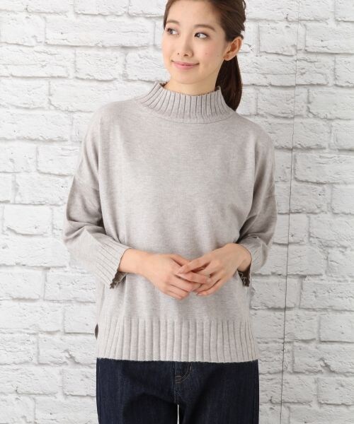 ハイネックデザインのニットプルオーバー。ネック、裾、袖部分をリブ使いにし、アクセントをプラスしました。レーヨン混で落ち感があるので、ワイドシルエットでありながらもすっきりとした印象に。パンツスタイルはもちろん、ワイドパンツやスカートなどボリュームボトムスとも好相性です!