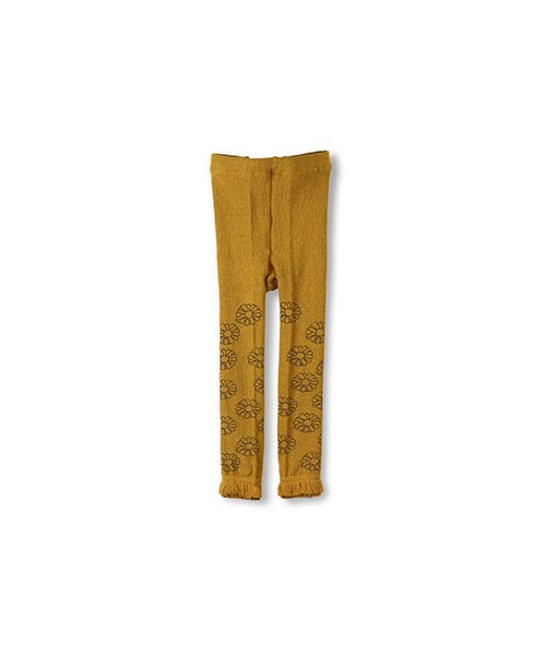 線画タッチの花柄が特徴的なデザインのスパッツです。ベースは少し大人っぽくシックなネイビーと、秋冬カラーのカラシをご用意しております。股部分にマチがあるので、ブランシェスのスパッツは、より体にフィットします。