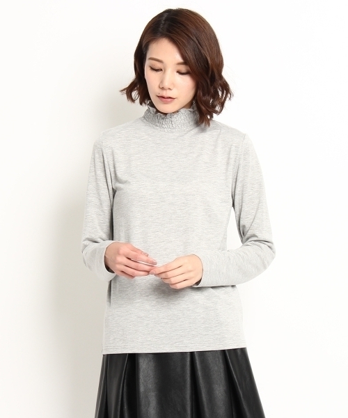 シャーリングをきかせたハイネックがさりげなくガーリーを演出。ストレッチのきいたレーヨンブレンド素材ですから、しなやかで肌あたりも抜群! カットソーのような軽やかさのため、秋は一枚ですっきり、寒くなったらレイヤードでと、ロングシーズン活躍のアイテムです。カラバリでそろえやすいお手頃プライスも必見!モデル情報:身長166cm B78 W58 H82 着用サイズ:38(M)店舗へのお問い合わせ商品番号:C12-19518主に秋に着用いただける商品です。サイズスペック●製品寸法:38(M):着丈58 B86 袖丈59 肩幅36 首周り40 タートル部分H6