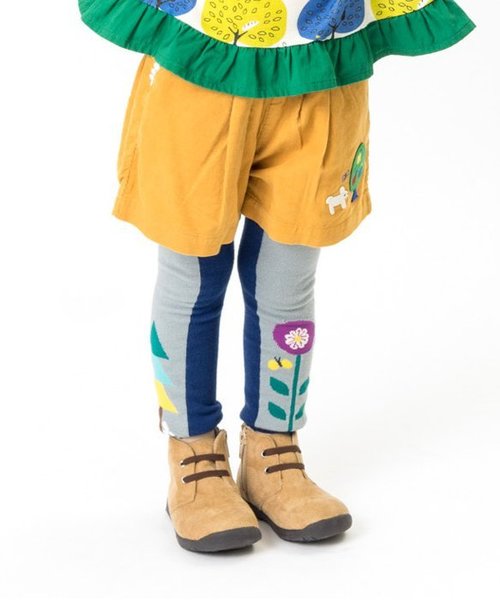Petit jam(プチジャム)のパンツ「秋の柄と無地のショートパンツ」は、北欧〜東欧のヴィンテージテキスタイルや雑貨をイメージした色・柄・オリジナルモチーフの特徴的なデザインが人気です。