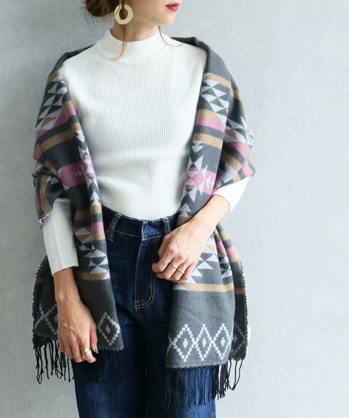 リーバーシブルデザインで表情色々♪コーデのポイントになるトレンドストール 【ポイント】 起毛のある薄手生地は扱いやすい柔らかなもので使い勝手、付け心地も◎ さらにリバーシブルだから印象やニュアンスの変化も簡単♪ シンプルなコーデにひとつ合わせるだけでガラっと印象が変わるアイテムです。 【生地感】 巻きやすい薄手生地 【サイズ感】 長さ170cm×横68.5cmの大判サイズ ※生産過程の都合により端やフリンジのほつれ、繊維の混紡が生じる場合がございます。 予めご了承くださいませ。