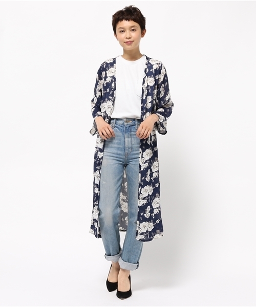 今年の羽織りトレンドの中でも花柄ガウンはダントツ人気!デニム+Tシャツなどにラフに羽織るだけで、たちまちコーディネートが今ドキになる手軽さが人気の秘密です。小花柄よりも少し大き目のフラワープリントで、華やかさもグッとアップ!夏の終わりから少し肌寒い時期まで活躍してくれる、まさに“使える”トレンドアイテム。