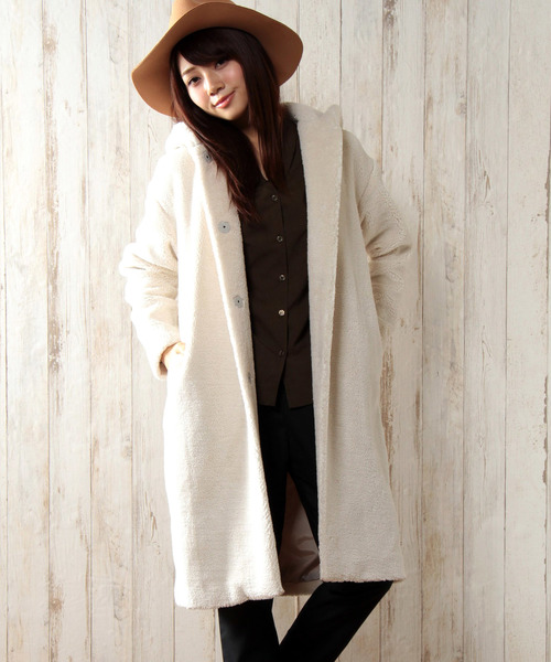 心地よい肌触りと包み込まれるようなあたたかさがクセになるボアコート。素材のかわいさを活かすために、ディテールは極力シンプルにデザインしています。そのため、カジュアルにもきちんとしたスタイルにも似合う汎用性の高いアウターとなりました。シルエットは今年らしいリラックスモードな肩落ちのドロップショルダー。ハードな素材とは違い軽い着心地なので、重たいコートにありがちな肩凝りなどもありません。袖裏にも裏地を付けているため、羽織る時に袖通りが良く着やすく仕上がっています。