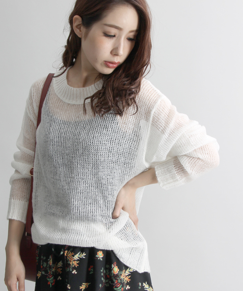 ゆるく編んだ柔らかなニット。透け感のあるメッシュボディが、手軽に着こなしのアクセントになります。程よくゆとりのあるシルエットが、フェミニンな雰囲気を演出してくれます。デニムやワイドパンツを合わせてカジュアルに、またスカンツなどと合わせてフェミニンにと幅広いコーディネートを楽しめるひと品。今季はベレー帽やチョーカーなど、小物で遊びを効かせたコーディネートもオススメです。