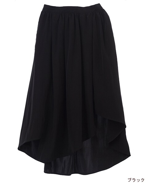 今季は裾がアシンメトリーのデザインのボトムがトレンドです。ウエスト部分にギャザーやタックが入って適度なボリューム感がカジュアルにお使いいただけます。ピーチ加工のしっかりとした生地を使っているのでやわらかくて履きやすいです。ウエスト後ろにゴムが入るので履き心地も楽です。トップスはニットやベロア素材のアイテムとあわせるのがおしゃれです。※総裏地付きです。