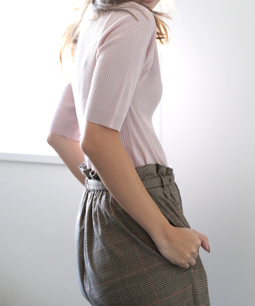 コーデのメインとしても、インナーとしても重宝する薄手ラメニットさりげなくラメの入ったポリエステルの糸を使用し、仕立てた薄手のニットプルオーバー。ちびハイネックにフリルが施され大人ガーリーで小顔効果があります。シンプルですが、存在感のあるアイテムなので1枚でのご着用はもちろん、キャミワンピースなどのインナー使いとしても、重宝する1枚。