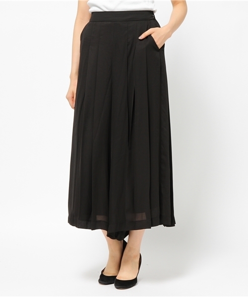 トレンドのプリーツスカートとガウチョパンツを合わせたような、いいとこ取りしたスカーチョ♪ はくだけで旬のスタイルになり、背面は、ゴムが効いており ストレスのないラクチンな着用感◎
