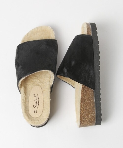 リアルポニースキンをアッパーに使用した遊び心や、イタリアらしいシンプルさも魅力のサンダル。アッパーの裏面とインソールにはフェイクムートンをあしらった、ふかふかの履き心地になっております。季節感も演出できるデザインで、素足でもタイツや靴下などと合わせたりと長く履いていただける1足です。◆原産国:イタリア