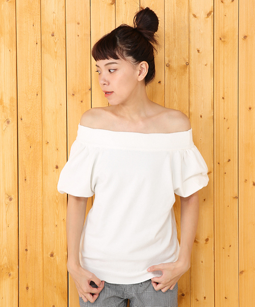 一枚で旬顔に仕上げてくれるオフショルダートップスです。ボリュームのあるパフスリーブ仕様になっているから、いつもよりぐぐっとフェミニンな自分を演出できます☆ ワントーンのプレーンなデザインなので、柄もののボトムスを合わせたりと、着回し力もピカイチ。ワイドパンツなど、ちょっぴり辛口なボトムスを合わせると、オフショルの甘さを抑えて、バランス良く仕上がります。