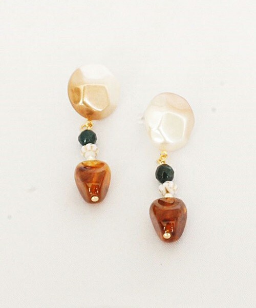 今年流行の大ぶりなヴィンテージ風のイヤリング/ピアスです。 グリーンの石は天然石のインディアンアゲート。 チェコビーズやべっ甲パーツと合わせる事で大人っぽい雰囲気になります。 ハイネックのノースリーブやニットにも相性抜群です! トレンドの大ぶりアイテムで秋のお出かけをしませんか?