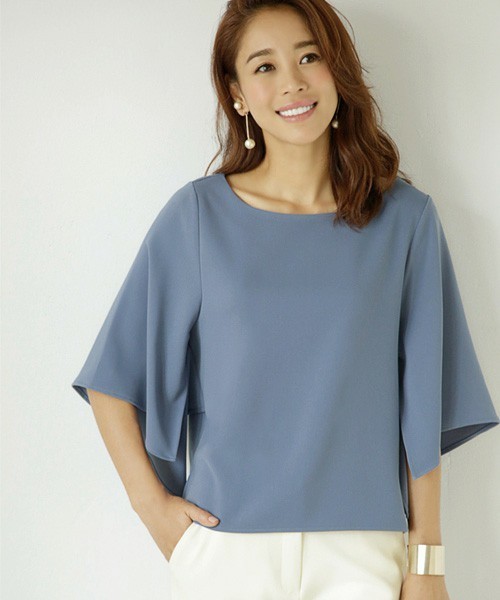 工夫を凝らしたワイドスリーブ(=太めのお袖)が生む、豊かな動きが素敵な6分袖ブラウス。 お袖の下部(内側)は縫われずに開いていて、それが可愛い動きを出します。 生地は適度に肉感のあるジョーゼット系の生地を使用しており、品の良さとこの値段には見えない高見え感が自慢。 手洗いOKでお手入れも簡単、とても扱いやすい素材です。 このブラウスは丈感がやや短く、ウエスト下程度なところもポイント。 そのためボトムスに裾を入れなくてもスカートやワイドパンツ等と合わせることができる、なかなか無い長さの1枚です。 裾には前後で段差を付けて、裾出し時も素敵にキマるところも優秀。 顔写りの良いキレイな4色展開は、それぞれに違う魅力を持ちながら、どれもすごく素敵です。 About STYLE DELI・・・ 【No Discount】 セールをしません! STYLE DELIでは、ファミリーセールのようなごくクローズドなSALEを除き、大々的・公的なSALEは行っていません。 新作として発売する時点で、お手頃なプライス提示を心がけています。 「ちょっと高いな」と感じるアイテムは、それだけ素材がいいか、加工賃が高い凝った商品であるとお考えください。 “最初からSALE価格”が私たちの目標です。 ※為替や材料費の変動により、価格変更を行うことはございます。