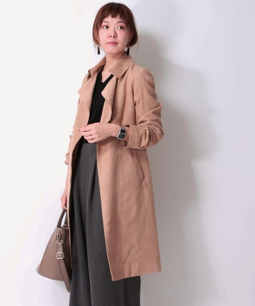 リアルな風合いを持つフェイクスエードを使用した旬なテロンチコート。軽やかにカーディガン感覚で気軽に着こなして頂けるアイテムです。トレンチコートを思わせるディテールなので、きちんとしたスタイルにもベストマッチ。袖をロールアップしてラフに着こなすのが今年らしくておすすめです。