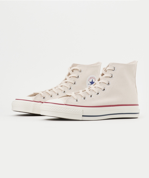 「CONVERSE」のアイコンモデル「ALL STAR」の「MADE IN JAPAN」ハイカットモデル。 通常のキャンバスモデルとは異なるコットンシューレース、ヒールパッチの下部分に施された「MADE IN JAPAN」の印字がプレミアム感を演出した仕上がり。 ホワイトのキャンバスに赤字で印されたインソールのロゴは日本の国旗をイメージ。 オリジナルカートンボックス仕様など随所にこだわったアイテムです。 【Converse】 マーキス・M・コンバースが設立したコンバース・ラバー・シュー・カンパニーが起源。コンバースの代表作である“オールスター”は1917年の誕生以来、そのスタイルは現在もほとんど変わることなく生産され続けられています。また、その他にもジャックパーセルやプロレザーなど長年愛され続け、スニーカー史に名を残す名作が揃っています。