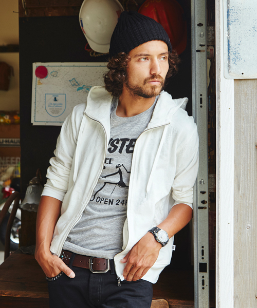 『一見すると無地のような、さり気ないオリジナル迷彩』 生地の表面に凸凹とした立体的な柄を表現することができる、手の込んだジャカード編みを駆使したフルジップパーカ。遠目では無地のようにも映りますが、よくよく見るとウッドランド迷彩の中にブランドアイコンのHYS GIRLが隠れるオリジナルのカモフラージュになっており、控えめながらも個性をアピールします。シンプルなパーカの着こなしやすさはそのままに、さり気なく遊びを効かせた_脱・マンネリなアイテムです。 『いつものパーカと同じように、どんなスタイルにもOK』 単色でのシンプルなカラーリングなので、総柄とはいえ派手な印象はなし。ベーシックな無地のパーカと変わらぬ感覚で、どんなコーディネイトにも難なく合わせられます。デニムをはじめとするカジュアルパンツはもちろん、スラックスなど品の良いボトムスのハズシとして羽織るのも効果テキメン。またテーラードジャケットやセットアップのインナーに重ね着したりと、レイヤード使いにももってこい。あえてオーバーサイズを選び、旬のビッグシルエット風にオフショルダーで着こなせば、より今っぽいスタイルを仕上がります。