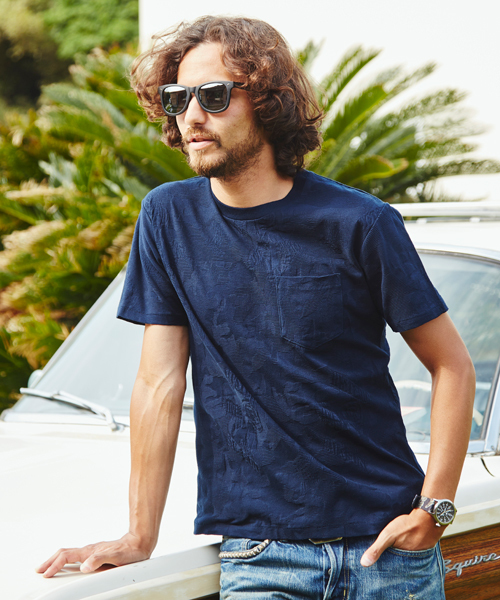 『一見すると無地のような、さり気ないオリジナル迷彩』 生地の表面に凸凹とした立体的な柄を表現することができる、手の込んだジャカード編みを駆使したポケット付きのTシャツ。遠目では無地のようにも映りますが、よくよく見るとウッドランド迷彩の中にブランドアイコンのHYS GIRLが隠れるオリジナルのカモフラージュになっており、控えめながらも個性をアピールします。シンプルなパーカの着こなしやすさはそのままに、さり気なく遊びを効かせた_脱・マンネリなアイテムです。 『いつものTシャツと同じように、どんなスタイルにもOK』 単色でのシンプルなカラーリングなので、総柄とはいえ派手な印象はなし。ベーシックな無地のTシャツと変わらぬ感覚で、どんなコーディネイトにも難なく合わせられます。デニムをはじめとするカジュアルパンツはもちろん、スラックスなど品の良いボトムスのハズシとして羽織るのも効果テキメン。またテーラードジャケットやセットアップのインナーに重ね着したりと、レイヤード使いにももってこい。あえてオーバーサイズを選び、旬のビッグシルエット風にオフショルダーで着こなせば、より今っぽいスタイルを仕上がります。