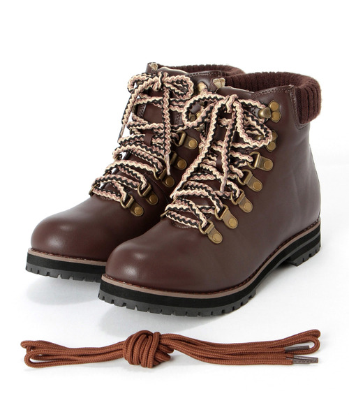 今年注目のレースアップシューズは、カジュアルにもフェミニンな装いのハズシにもなるマウンテンブーツがおすすめ♪MIXと単色と2種類のシューレース付きで、コーディネートに合わせて変えることができます。
