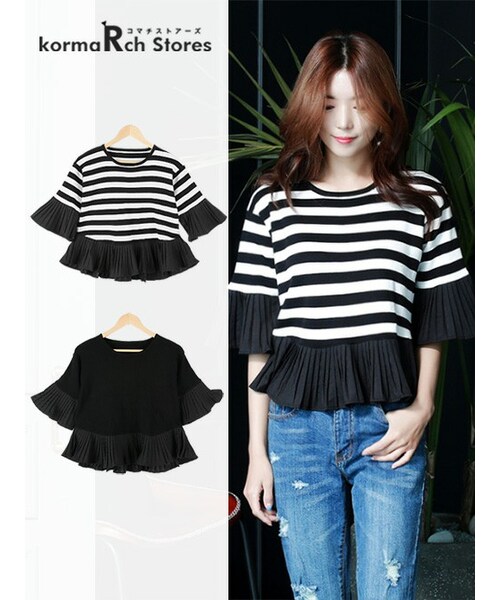 【袖も裾もフリルT】大人気のソデフリルプルオーバーに柄とセンスが加わり登場!!
