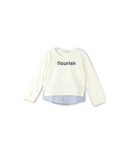 ストライプのシャツを重ね着したような1枚で存在感のある長袖Tシャツです。胸元のロゴ部分は刺繍使いにすることで立体感を出し、オシャレな雰囲気に仕上げています。ママとペア出来る商品です。※80cmから90cmは、首もとがスナップボタン仕様となります。