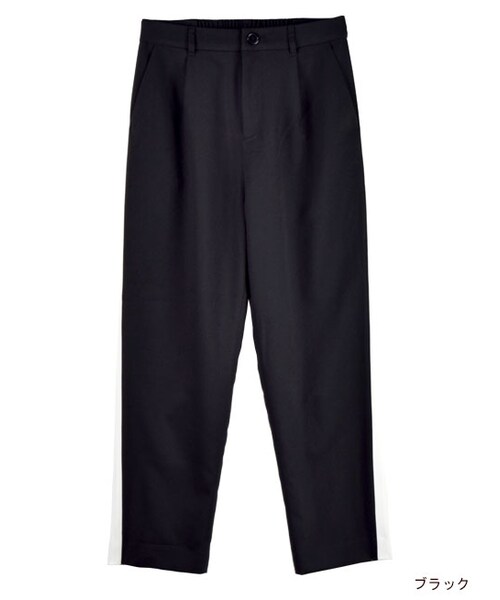 脇にラインが入ったスポーティーな雰囲気のツイルパンツ。今季は少しスポーツテイストが入ったアイテムをコーデに取り入れるのがおしゃれです。タックも入っているのできれいめな雰囲気で着ていただけます。すっきりとしたシルエットで足がすらっと見えるのもポイント。ウエスト後ろにゴムが入るのではきやすさも◎です。※こちらはセットフェア対象商品です。
