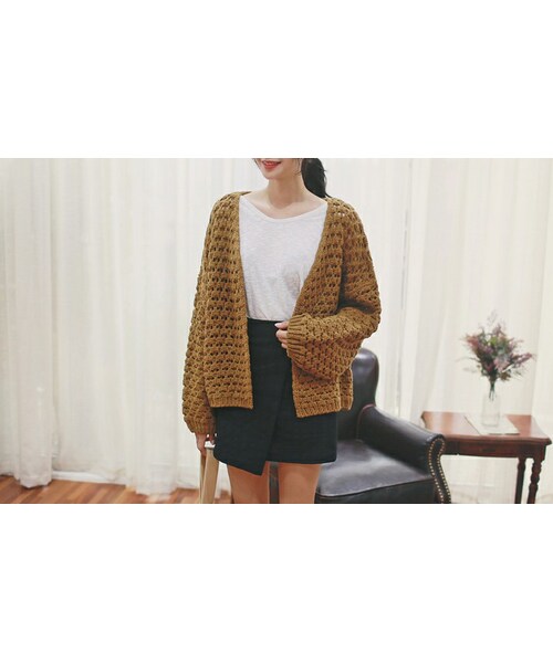今季に欠かせない透かし編みのルーズフィットカーディガンです。 ナチュラルな印象を与えるオープンタイプのデザインです。 前開きタイプのカーディガンは羽織りやすいのが特長◎ ドロップショルダーのボリューミーなルーズシルエットが女の子らしく華奢なボディラインを演出してくれます。透け感たっぷりで季節の変わり目から活躍してくれる今季のマストなアイテムです。