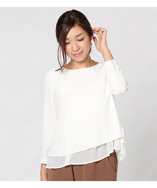 繊細なジョーゼット素材で上品な雰囲気漂うブラウスです。シフォンを重ねてレイヤード風にすることで、動きのあるシルエットに。サイドに入った深いスリットが着こなしにヌケ感を添え、大人の余裕も感じさせてくれます。シンプルなので柄物や、すっきりとしたボトムスと合わせてコーディネートするのがオススメです。