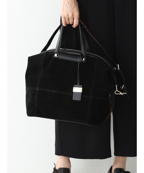 ざっくりと荷物が入る大容量のショルダーボストンです。前後にあおりポケットが付き、使い勝手はバツグンです。出張や一泊旅行にも対応出来ます。背面は牛革になり色落ちの心配を軽減させています。さりげないハラコ使いがアクセントに。