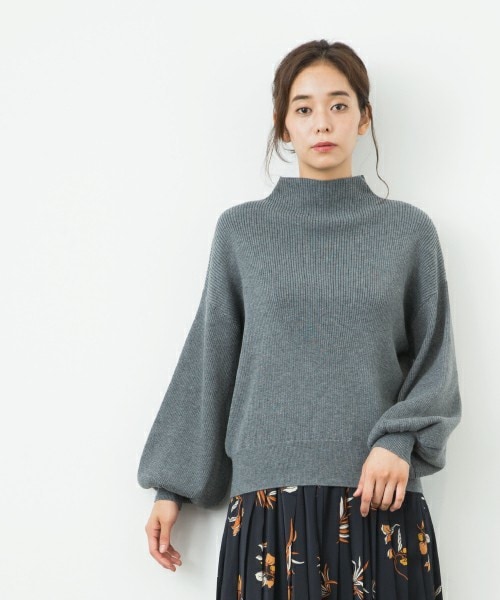 袖ボリュームニットは落ち感のあるニットで華奢見えする1枚。 デザイン性もあり、控えめながら女性らしさも演出します。スカートやワイド系パンツとのコーディネートが旬なスタイリング。 タートルネックよりも浅いボトルネックが上品に見えるポイントです。