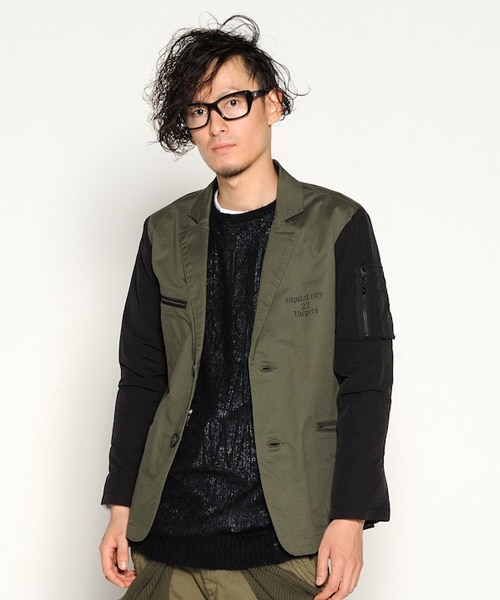 袖がナイロン、身頃はコットンの異素材の融合で、どことなくミリタリーでスポーティーな印象のあるデザインに。今季のテーマにぴったりな一着。