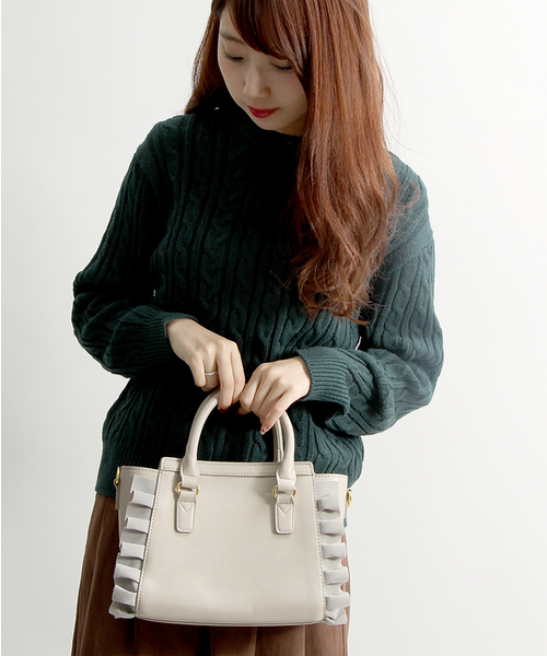 フリルデザインで仕上げたショルダーバッグ。ショルダーベルトは取り外し可能ですので、コーディネートに合わせて2WAYでお楽しみ頂けます。程よいサイズ感で、普段のスタイリングに取り入れるだけで着こなしのアクセントになります。お値段もお手頃で、ご自身用は勿論、プレゼントにもオススメです。