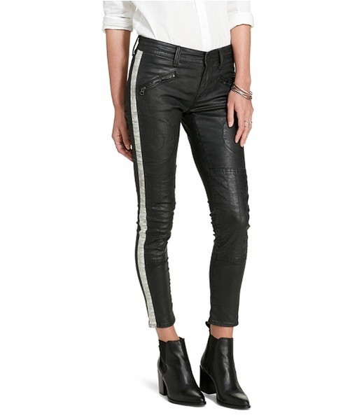 WMDSDNMW4P10209 光沢のあるコーティングがレザーのような風合いを醸し出すスキニーな Morgan ジーンズ。スリークなスタイルをさらに引き立てるモトクロス風のディテールが魅力。コントラストの効いたサイドストライプと足首丈のシルエットが魅力のクールなアイテム。張り感のあるホワイトシャツ、ブーティと合わせればさらに魅力アップ。 ・ローライズ / クロップドスキニーフィット ・ベルトループ / シグネチャーのシャンク留めジップフライ ・フロントウエストにジップポケット2つ / 背面にジップポケット2つ / 両サイドにシームのディテール / キルティング入りのニーパッチ / 両脚の外側にコントラストの効いたストライプ ・背面右に Denim & Supply Ralph Lauren をデボス加工したレザーパッチ ・コットン98%、エラステン2% ・洗濯機洗い可 ・輸入素材 デニム アンド サプライ ラルフローレン