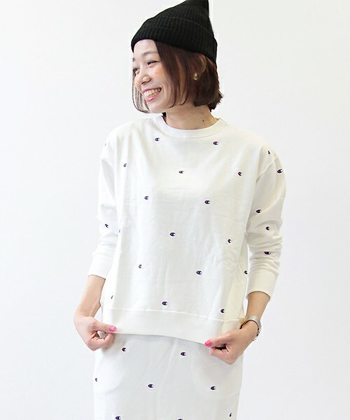 ◇champion◇ 人気のchampionから新作が入荷しました。 小さなchampionのロゴが全面に刺繍されたデザインが印象的な一枚。 シャツなどをレイヤードさせて着てもカワイイです。 同シリーズのスカートとセットアップもおすすめです!