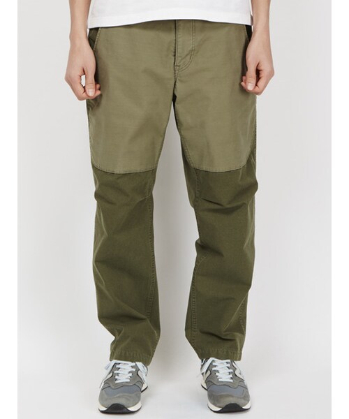 ■アーミーパンツです。同系色の異素材で切り替えたフロントが特徴の一本。主張し過ぎないコントラストがポイントです。ゆったりとしたシルエットで男らしいスタイリングにはまるアイテムとなっています。