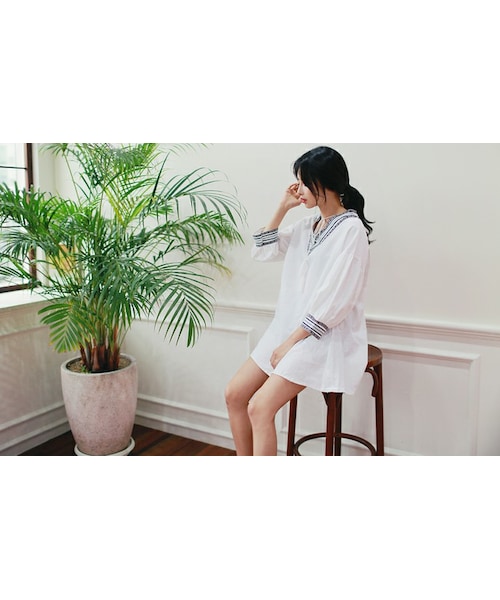 エスニックな刺繍デザインが乙女チックなワンピース。 ネックラインのタッセルと個性的な絶妙なミニ丈がスタイルに差を付けます。 エスニック調なので、ユニークな魅力あり。 ふんわりした袖のデザインがキュートなアクセントになっています!一枚で十分存在感があるから、コーディネートを考えずに着こなしを楽しめるワンピースです。