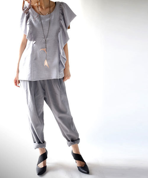 さりげなく垢抜けるお洒落のヒント。『ラクちんでも大人っぽく魅せる魅惑のパンツ。』シンプルタックパンツの登場です!人気のパンツデザインで、今回はリラックスパンツなのにきちんと感も表現してくれるパンツスタイルです。普通のパンツでは表現できない、このシルエットの綺麗さときちんと感の融合。このバランスこそお洒落さんを盛り上げるカタチなのです。タックが左右一か所づつに入っているから美脚シルエットを演出してくれます。シンプルにモノトーンでコーデするだけでも断然決まる、それはこのパンツだからこそ。ウエストは総ゴム仕様ですので、体型の気になる方も穿きやすい一枚です。初心者の方にもぜひオススメした一着です。