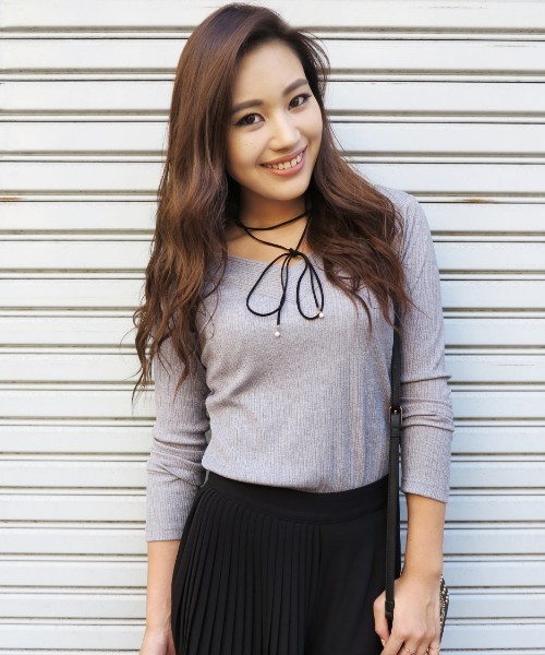 デコルテラインを綺麗に見せてくれるカットソートップスです。存在感のあるランダムリブと、程良くフィットするシルエットがポイントです。