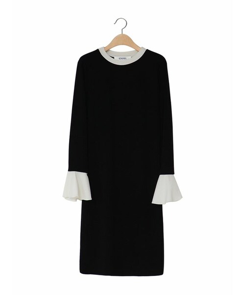 フリルのようなカフスデザインが特徴のさらっと身につけるだけでフォーマルな着こなしができるクラシックなデザインのテレコワンピースです。